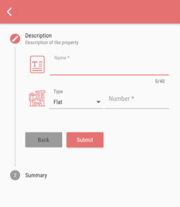 2. Enter the mandatory property information (Property Name, Property Type and Number) and click “Submit”: